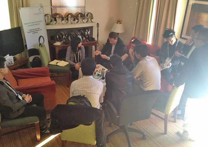 每年的CES对于科技、电子厂商来说都是一场盛宴,很多重量级新品都会在CES上发布。今年在美国拉斯维加斯举行的CES2014上,我司就举行了盛大的客户见面会,发布了最新推出的骨传导,智能可穿戴设备,触摸蓝牙等多款新品,成为展示中众人瞩目的焦点。