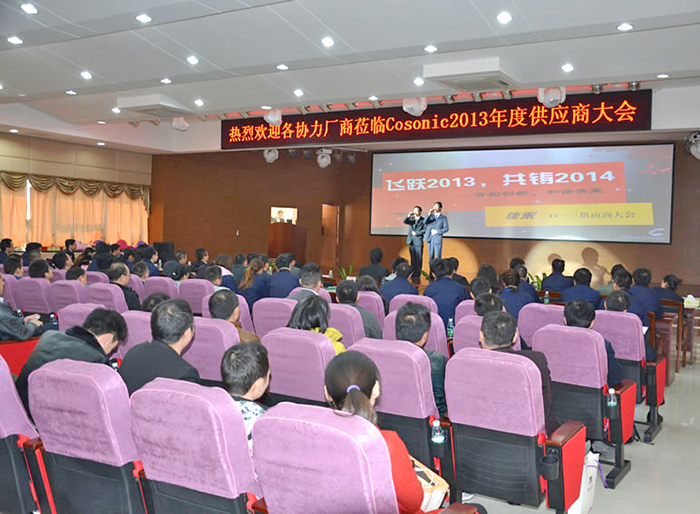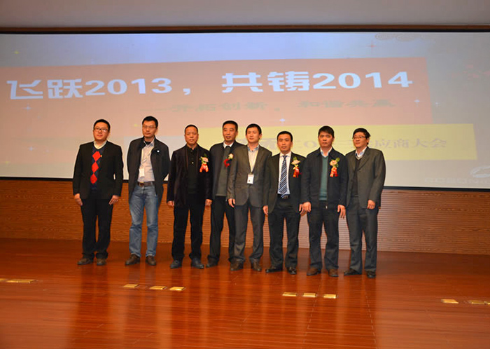 2013年12月28日以“飞跃2013,共铸2014,开拓创新,和谐共赢”为主题的供应商大会在松湖华科正式落下帷幕。完美(中国)体育公司总裁:严文华先生,完美(中国)体育公司总经理:肖伟群先生,完美(中国)体育公司副总经理:陈亮先生、符德全先生、刘迪先生,各分厂领导、采购人员和品质部门,以及各供应商参加了本次大会。